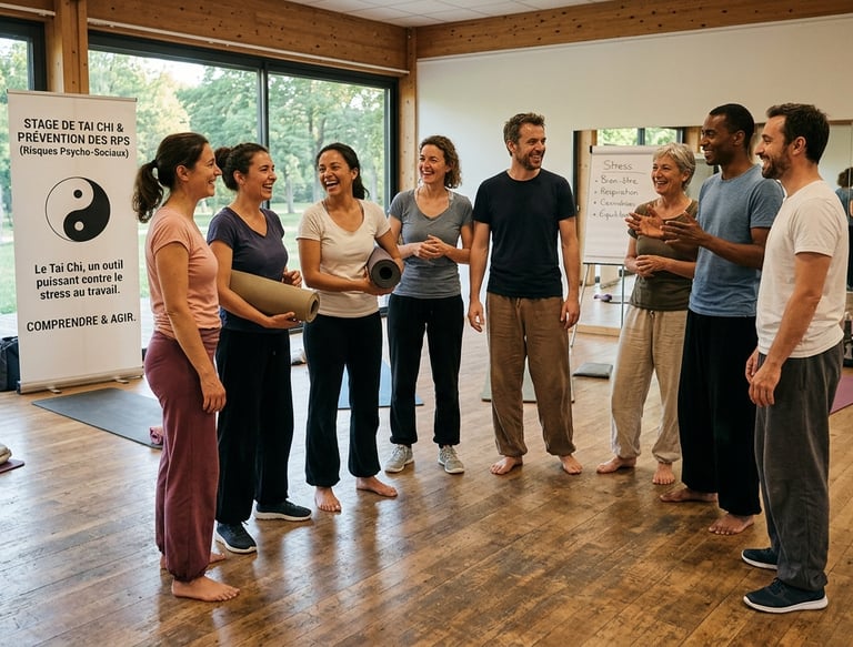 Découvrez notre stage de Tai Chi dédié à la prévention des Risques Psycho-Sociaux (RPS), un moment privilégié pour vos équipes afin de se ressourcer, se reconnecter et apprendre à gérer le stress au quotidien. Notre approche combine les principes millénaires du Tai Chi avec des stratégies modernes pour favoriser le bien-être au travail.